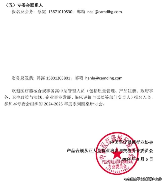 歡迎醫(yī)療器械合規(guī)事務(wù)高中層管理人員(包括質(zhì)量管理、產(chǎn)品注冊、政府事務(wù)、衛(wèi)生政策與法規(guī)、企業(yè)事業(yè)發(fā)展、臨床評價(jià)與試驗(yàn)等部門負(fù)責(zé)人)報(bào)名入會參加本專委會組織的 2024-2025 年度系列圓桌研討會。