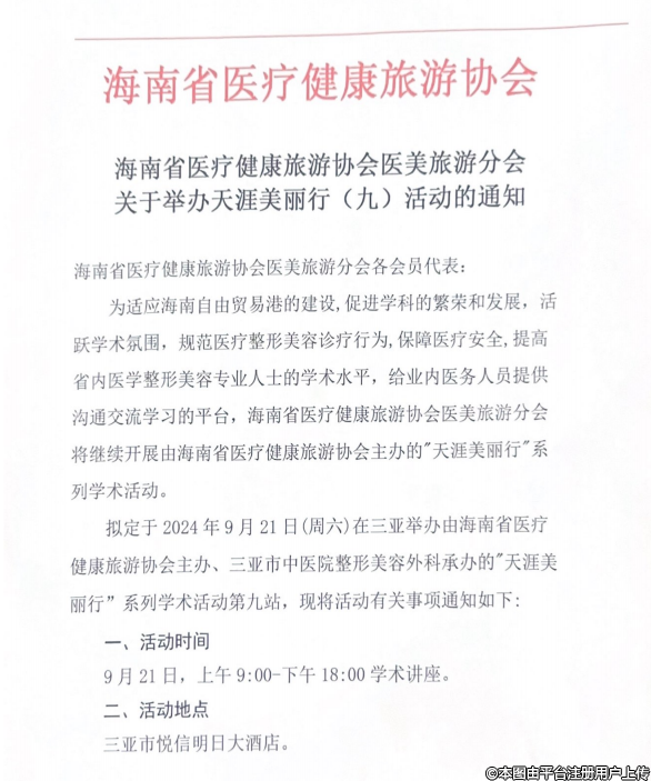 海南省醫(yī)療健康旅游協(xié)會醫(yī)美旅游分會關(guān)于舉辦天涯美麗行(九)活動的通知