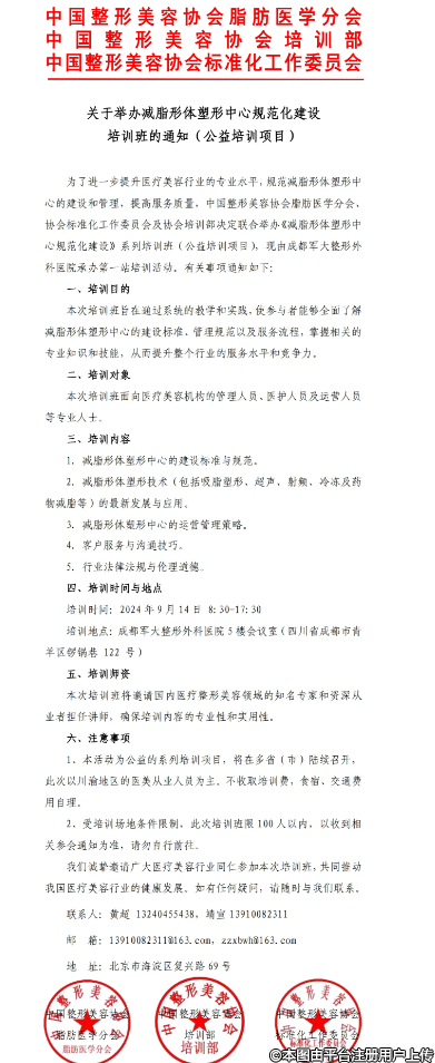 我們誠(chéng)摯邀請(qǐng)廣大醫(yī)療美容行業(yè)同仁參加本次培訓(xùn)班,共同推動(dòng)我國(guó)醫(yī)療美容行業(yè)的健康發(fā)展。如有任何疑問(wèn),請(qǐng)隨時(shí)與我們聯(lián)系。