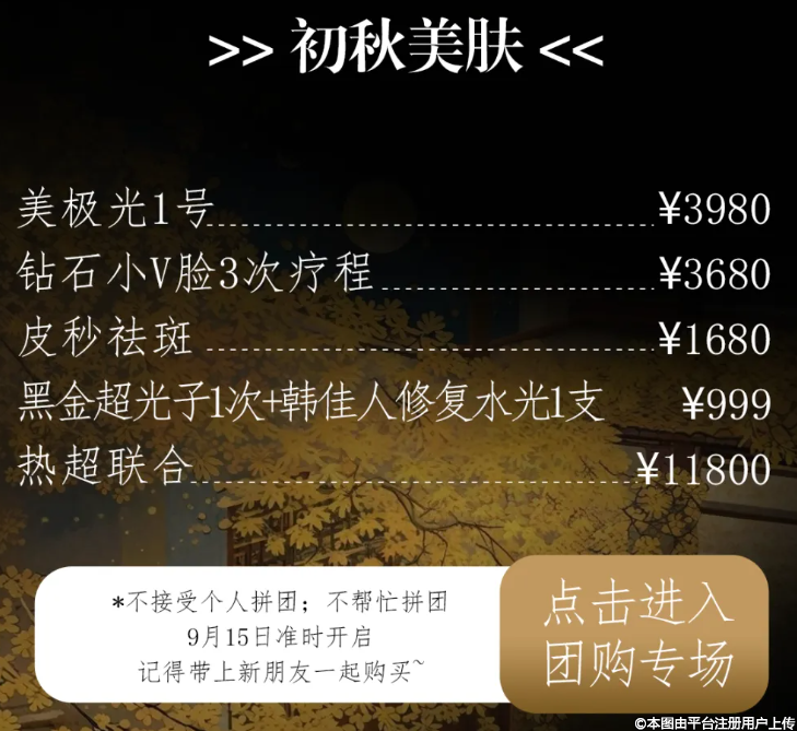 蹦跶著 蹦跶著馬上就要迎來中秋國慶雙節(jié)了!大家是不是摩拳擦掌早早就準(zhǔn)備好假日如何度過了?有人換發(fā)型,有人去旅游還有人準(zhǔn)備偷偷去做健康體檢......因?yàn)榧闻d曙光美容中秋團(tuán)購低價(jià)給香迷糊了。