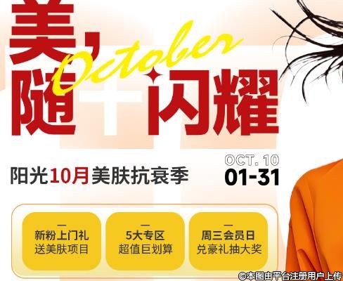 美隨閃耀,深圳陽光10月美膚抗衰季給大家送美容福利啦,新粉上門禮,送美膚項目,人氣美膚項目五選一,大家趕緊來吧!