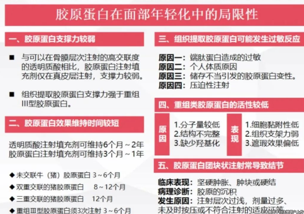 沒有材料是全能的,膠原蛋白注射填充劑的應(yīng)用過程中也出現(xiàn)了一些問題,今天來聊一聊膠原蛋白在面部年輕化中的局限性,下面將從5個(gè)方面和大家展開分享。
