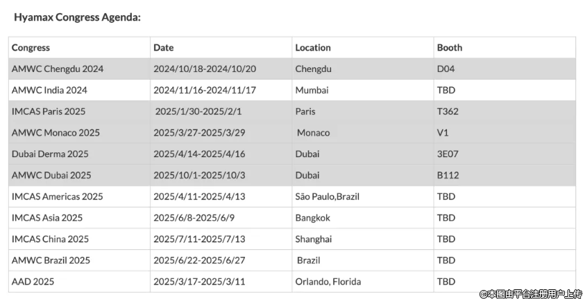 為了加快在中國的產(chǎn)品布局,瑞士海雅美實驗室(Laboratories Hyamed SA)將于2024年10月18-20日亮相【AMWC CHINA世界美容抗衰老大會】(以下簡稱:AMWC大會),展位號D04。繼巴黎IMCAS、迪拜Derma、意大利卡思曼伯及摩納哥AMWC之后,瑞士海雅美實驗室又將與AMWC大會擦出怎樣的火花呢?