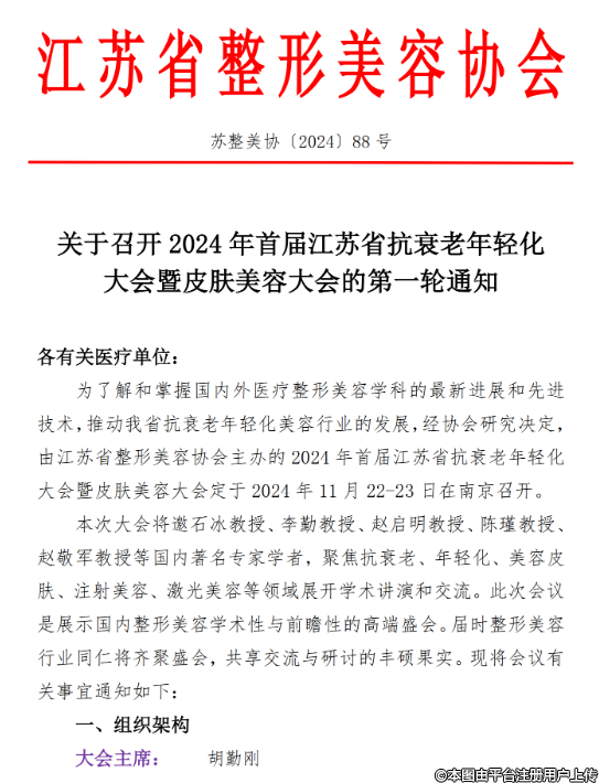 關(guān)于召開2024年首屆江蘇省抗衰老年輕化大會暨皮膚美容大會的第一輪通知