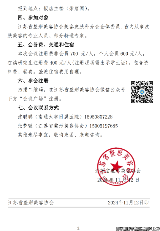 關(guān)于召開江蘇省整形美容協(xié)會(huì)美容皮膚科分會(huì)2025年學(xué)術(shù)年會(huì)暨江蘇省皮膚美容和皮膚外科發(fā)展大會(huì)的通知