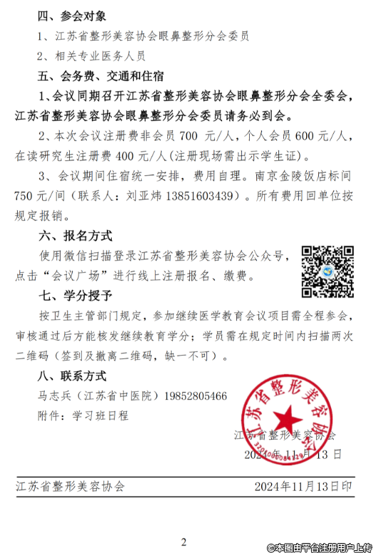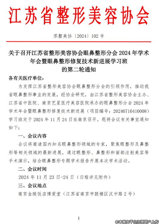 關(guān)于召開(kāi)江蘇省整形美容協(xié)會(huì)眼鼻整形分會(huì)2024年學(xué)術(shù)年會(huì)暨眼鼻整形修復(fù)技術(shù)新進(jìn)展學(xué)習(xí)班的第二輪通知