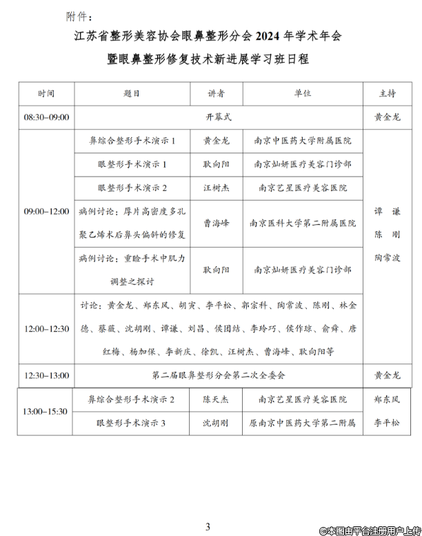 江蘇省整形美容協(xié)會(huì)眼鼻整形分會(huì)2024年學(xué)術(shù)年會(huì)暨眼鼻整形修復(fù)技術(shù)新進(jìn)展學(xué)習(xí)班日程