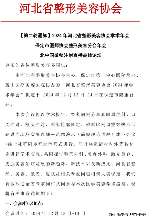 【第二輪通知】2024年河北省整形美容協(xié)會(huì)學(xué)術(shù)年會(huì)保定市醫(yī)師協(xié)會(huì)整形美容分會(huì)年會(huì)北中國(guó)微整注射直播高峰論壇