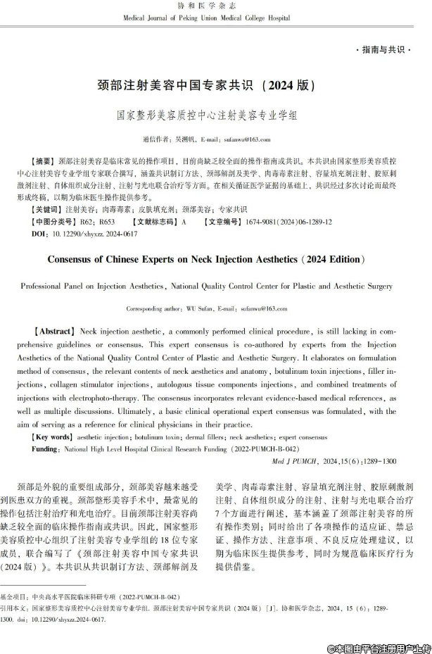 《頸部注射美容中國專家共識(2024版)》權(quán)威發(fā)布