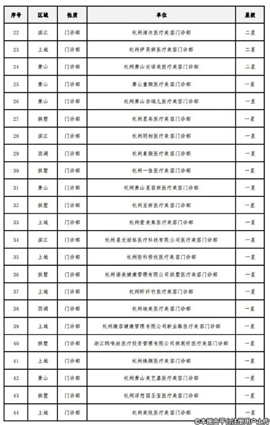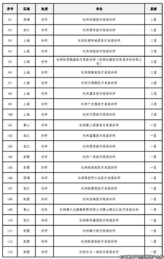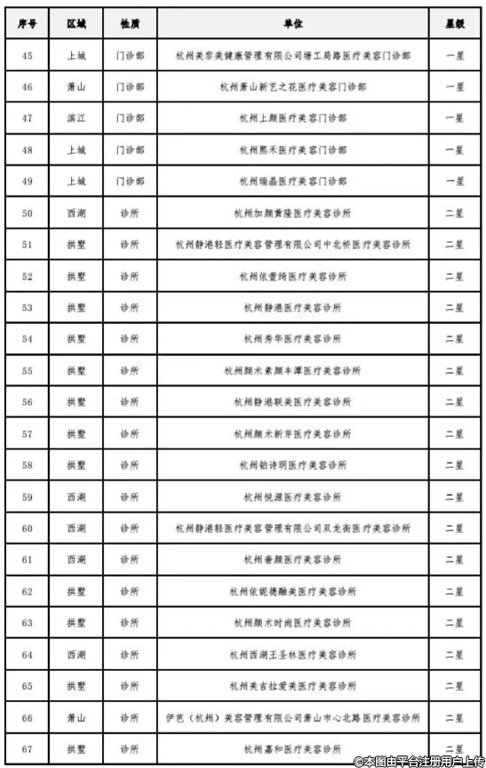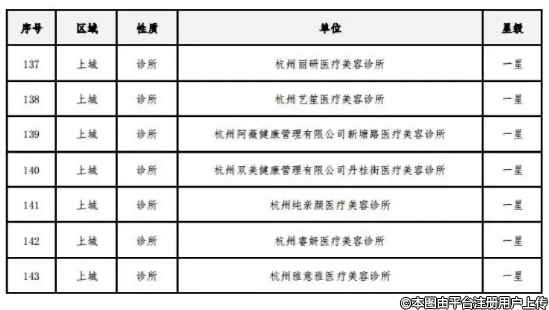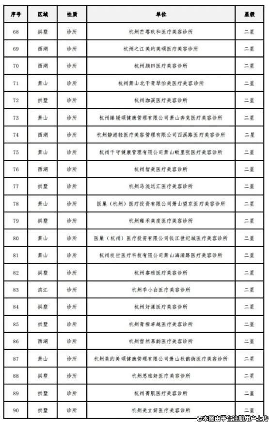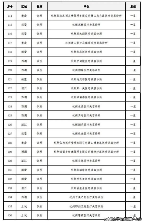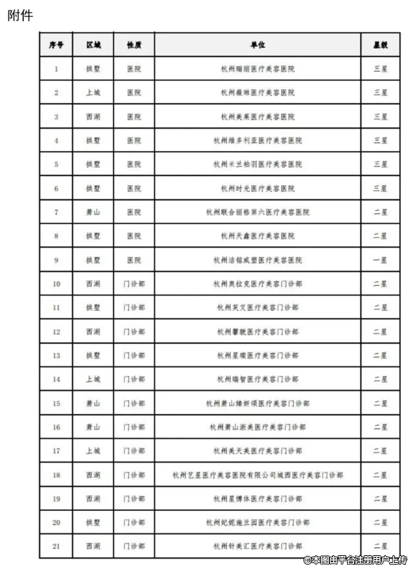 附件:《杭州市醫(yī)療美容機(jī)構(gòu)規(guī)范化星級評價結(jié)果》