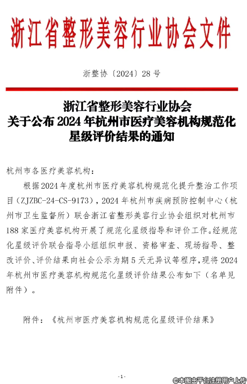 關(guān)于公布2024年杭州市醫(yī)療美容機(jī)構(gòu)規(guī)范化星級評價結(jié)果的通知
