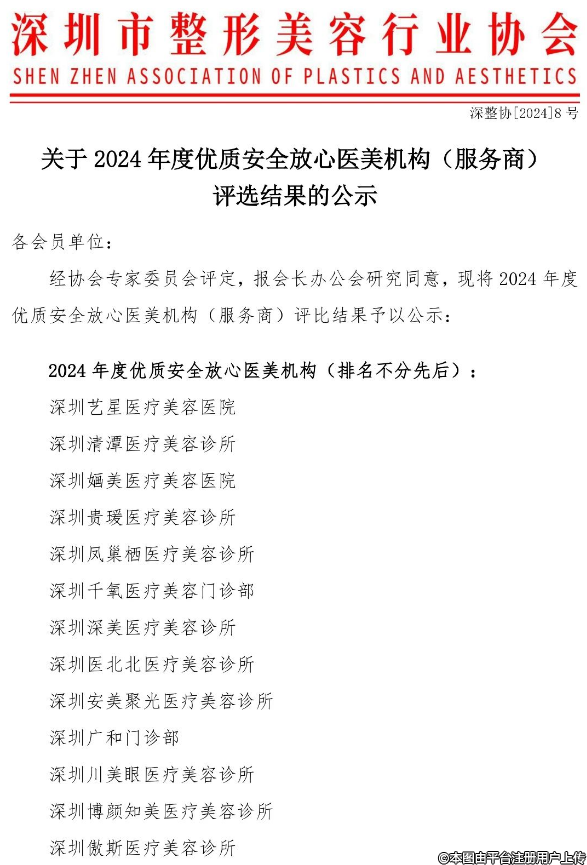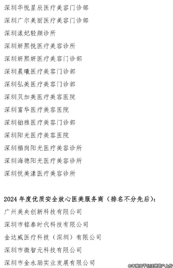 關(guān)于2024年度優(yōu)質(zhì)安全放心醫(yī)美機構(gòu)(服務(wù)商)評選結(jié)果的公示