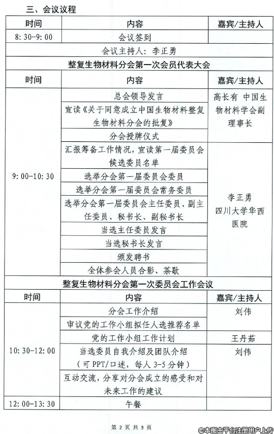 中國生物材料學會關于召開中國生物材料學會整復生物材料分會成立大會的通知