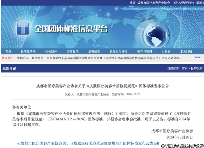 團(tuán)體標(biāo)準(zhǔn) | 《皮膚醫(yī)療美容術(shù)后修復(fù)規(guī)范》團(tuán)體標(biāo)準(zhǔn)發(fā)布公告