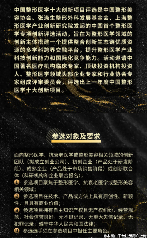 1、參選項目聚焦于整形醫(yī)學(xué)、抗衰老醫(yī)學(xué)或整形美容相關(guān)領(lǐng)域;
