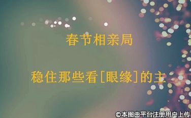 春節(jié)相親局 穩(wěn)住那些看[眼緣]的主
