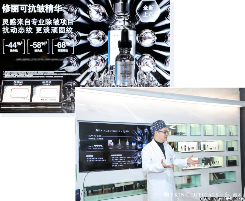“修麗可抗皺精華與修麗可鉑研膠原、進(jìn)口除皺、光電的整合式搭配,彌補(bǔ)了光電注射對(duì)于靠近眼瞼無(wú)法治療的區(qū)域;術(shù)中輔助增效1+1>2,術(shù)后長(zhǎng)期維養(yǎng)鞏固療效。”
