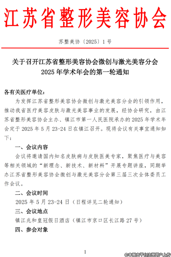 關(guān)于召開江蘇省整形美容協(xié)會(huì)微創(chuàng)與激光美容分會(huì)2025年學(xué)術(shù)年會(huì)的第一輪通知