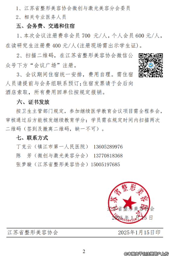 1、江蘇省整形美容協(xié)會(huì)微創(chuàng)與激光美容分會(huì)委員