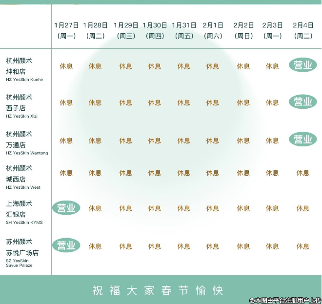 顏術(shù)醫(yī)美春節(jié)放假安排如下: