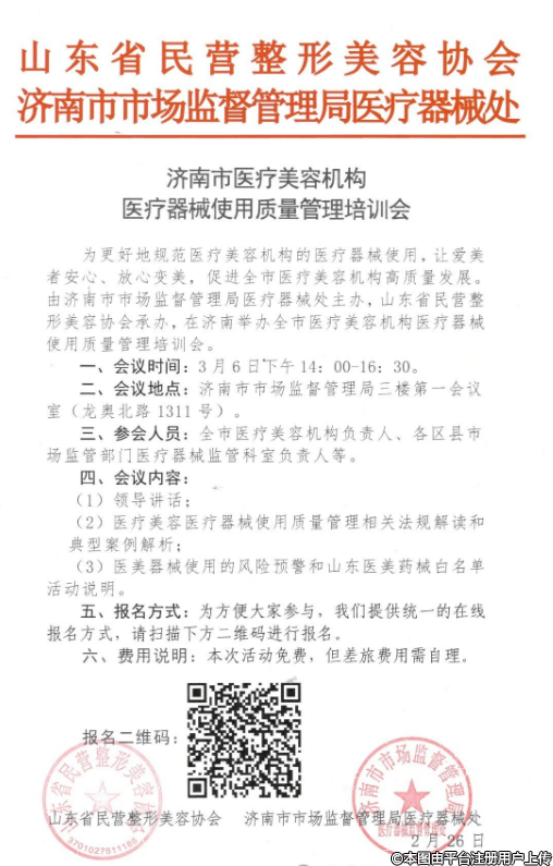 通知丨濟(jì)南市醫(yī)療美容機(jī)構(gòu)醫(yī)療器械使用質(zhì)量管理培訓(xùn)會(huì)