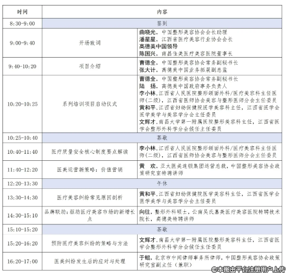附件:2025年醫(yī)療美容機(jī)構(gòu)醫(yī)療質(zhì)量提升系列培訓(xùn)班(江西站)日程