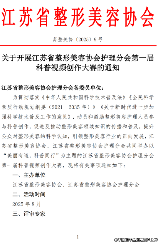 關(guān)于開展江蘇省整形美容協(xié)會護(hù)理分會第一屆科普視頻創(chuàng)作大賽的通知