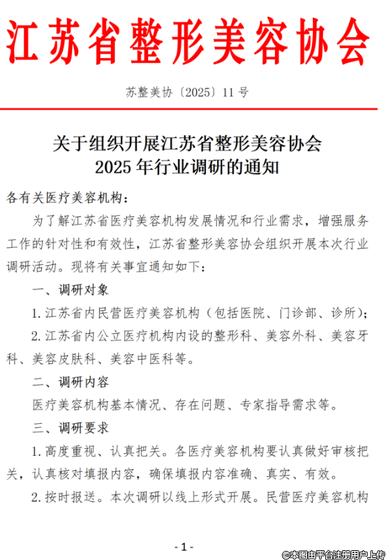 關(guān)于組織開展江蘇省整形美容協(xié)會2025 年行業(yè)調(diào)研的通知