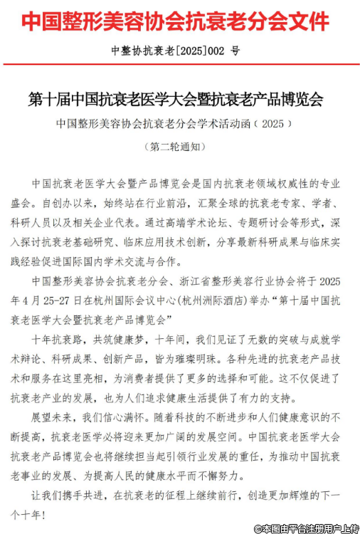 中國整形美容協(xié)會(huì)抗衰老分會(huì)學(xué)術(shù)活動(dòng)函(2025)