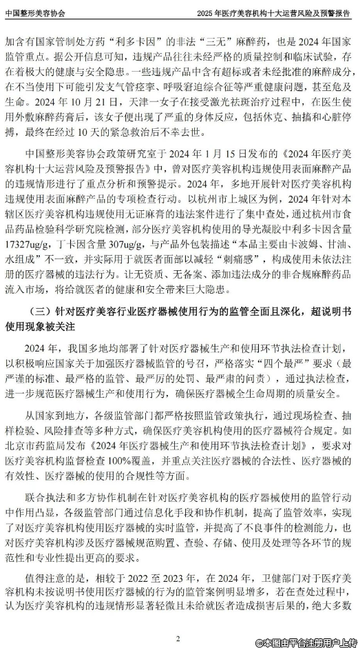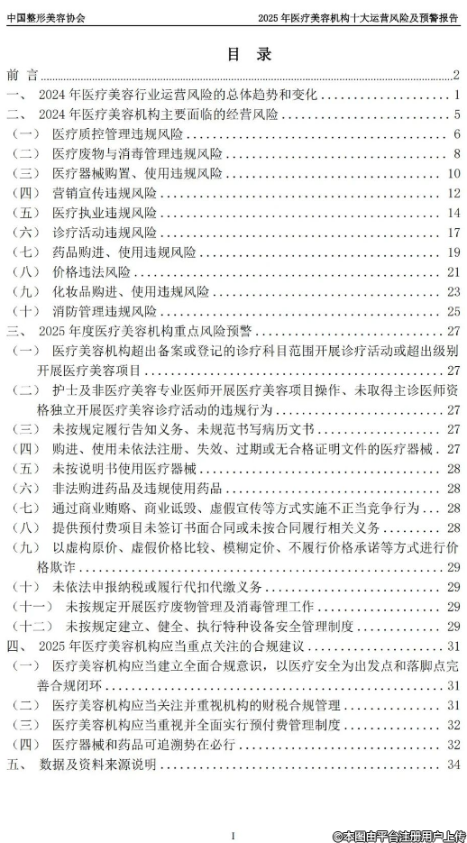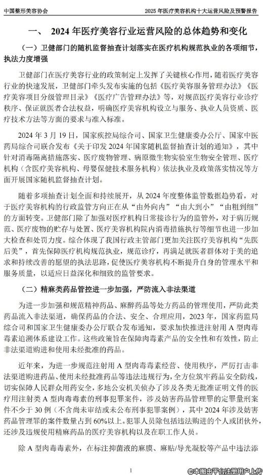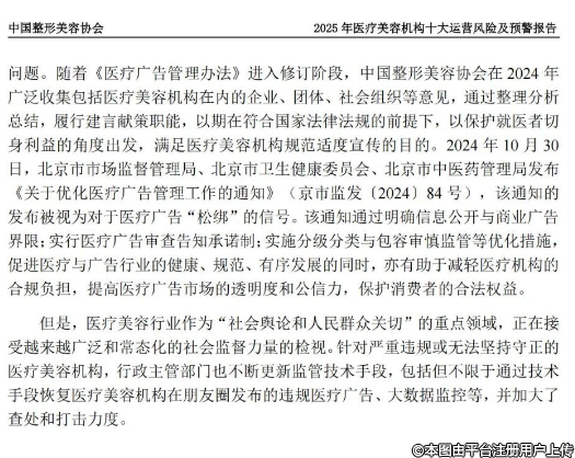 2025年醫(yī)療美容機構(gòu)十大運營風險及預警報告