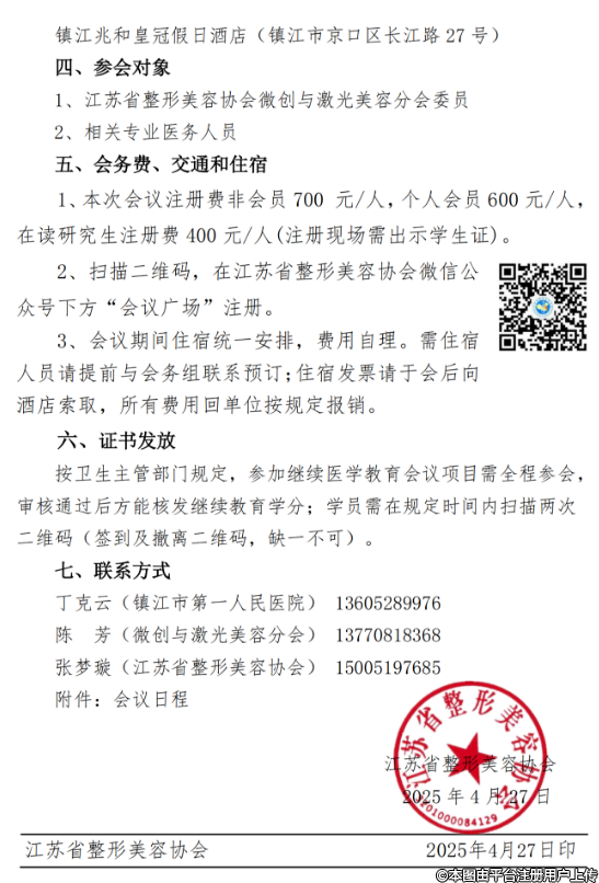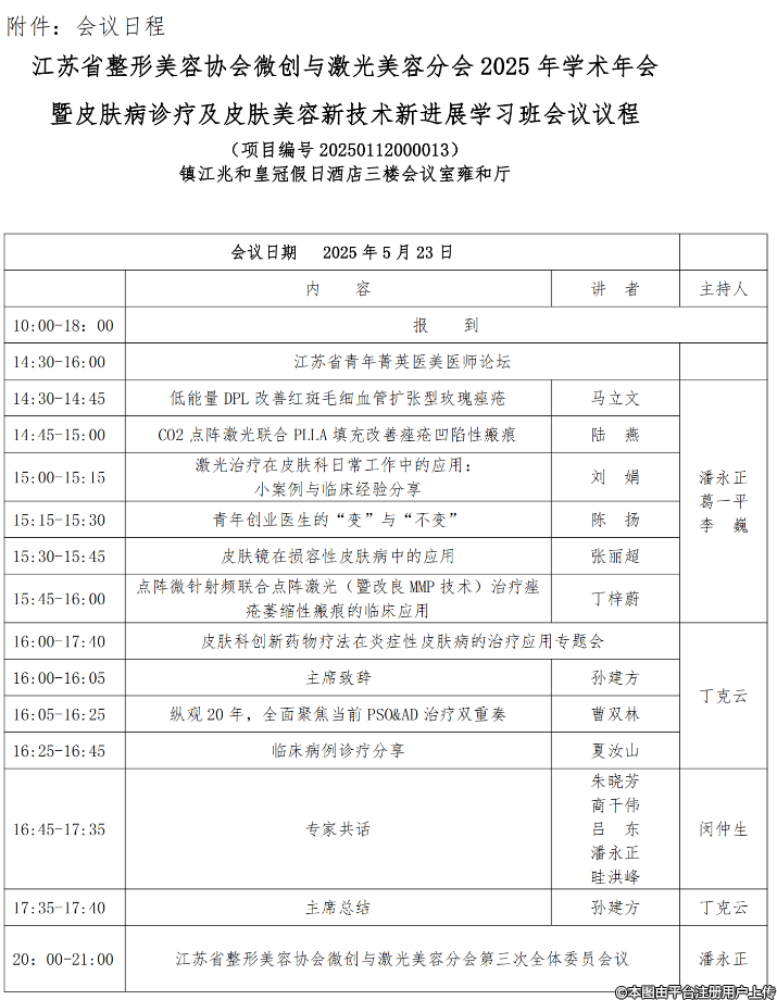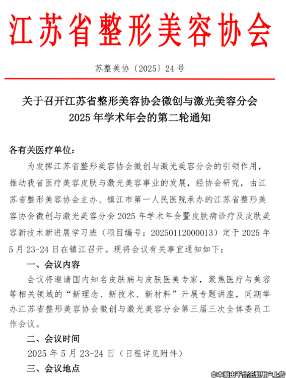 關(guān)于召開江蘇省整形美容協(xié)會微創(chuàng)與激光美容分會2025年學(xué)術(shù)年會的第二輪通知
