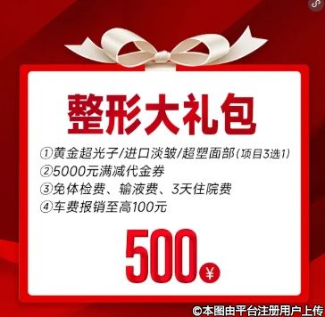 五一期間想做整形的寶子記得先買券啊~~5月1-5日期間,搶500元整形大禮包,①項目3選1黃金超光子/進口淡皺/超塑面部單部位②5000元滿減代金券③免體檢費、輸液費、3天住院費④車費報銷至高100元。