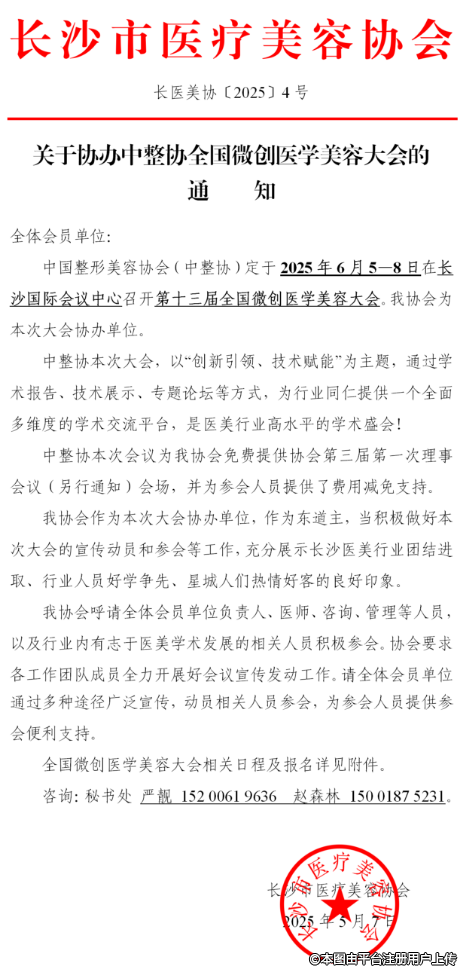 長(zhǎng)沙市醫(yī)療美容協(xié)會(huì)關(guān)于協(xié)辦中整協(xié)全國(guó)微創(chuàng)醫(yī)學(xué)美容大會(huì)的通知