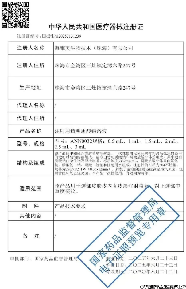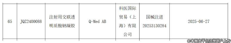 6月27日,高德美旗下注射用交聯(lián)透明質(zhì)酸鈉凝膠獲得國(guó)家藥監(jiān)局批準(zhǔn)注冊(cè),注冊(cè)證號(hào)為國(guó)械注進(jìn)20253130284。