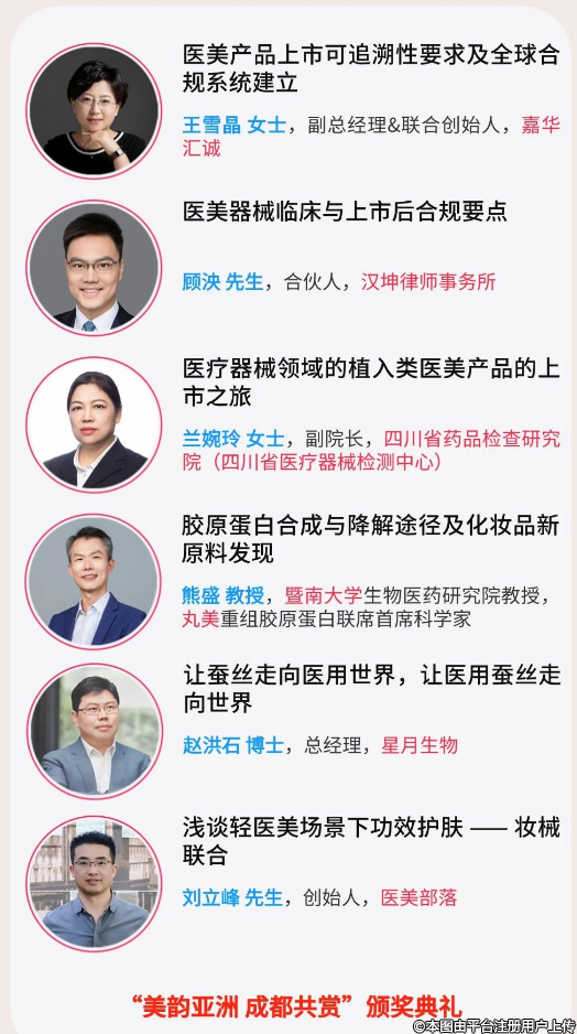 支持單位 | 四川省化妝品質(zhì)量發(fā)展促進會、成都中城九聯(lián)產(chǎn)業(yè)發(fā)展有限公司、華熙生物、上海市生物醫(yī)藥產(chǎn)品注冊指導服務工作站外高橋分站、上海外高橋生物醫(yī)藥產(chǎn)業(yè)發(fā)展有限公司