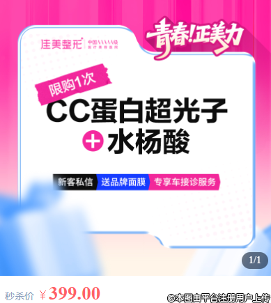 南昌佳美超值優(yōu)惠,讓你青春正美力,限購(gòu)一次,CC蛋白超光子+水楊酸,好肌膚帶回家。