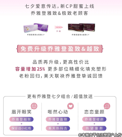 七夕喬雅登家族再添新CP,是心動(dòng)?。∶赓M(fèi)升級(jí)體驗(yàn)。品質(zhì)再升級(jí),更高性價(jià)比容量增加25%更多部位精細(xì)化填充塑形老粉回歸,大連美天聯(lián)袂喬雅登摯誠(chéng)回饋。