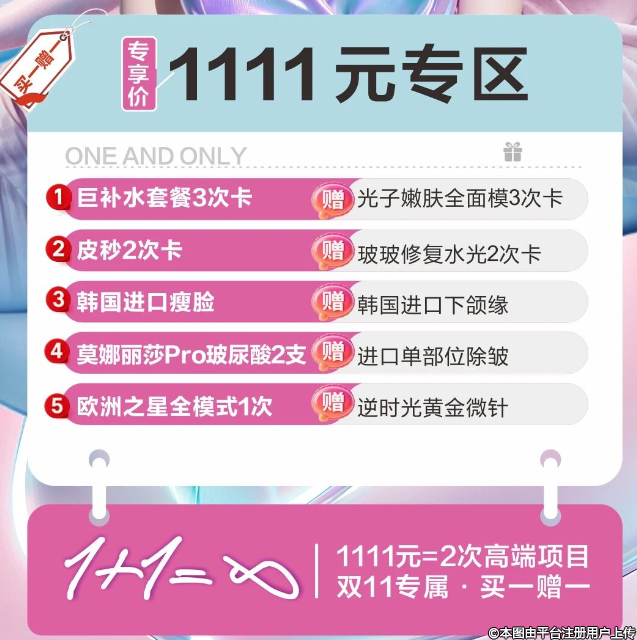 這個(gè)雙十一,別再盲目囤貨!讓專業(yè)醫(yī)療級(jí)護(hù)膚為您開啟「煥顏新生」。東莞壹加壹整形“雙11 潮美禮遇卡 ” 的感恩加碼政策來(lái)啦!項(xiàng)目多到讓人眼花繚亂?東莞壹加壹整形提供基于專業(yè)醫(yī)學(xué)診斷的煥膚美容解決方案,讓每一次護(hù)理都能看得見效果。