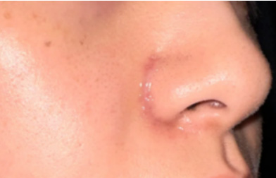 L型硅膠假體的鼻尖部分會壓迫鼻頭,而鼻頭屬于非常敏感的部位。長期被壓迫的鼻頭可能會出現(xiàn)皮膚萎縮、發(fā)麻、發(fā)硬、發(fā)白等問題,如果不及時取出假體,可能會進一步導(dǎo)致鼻頭被假體頂破,出現(xiàn)感染、潰爛等并發(fā)癥,