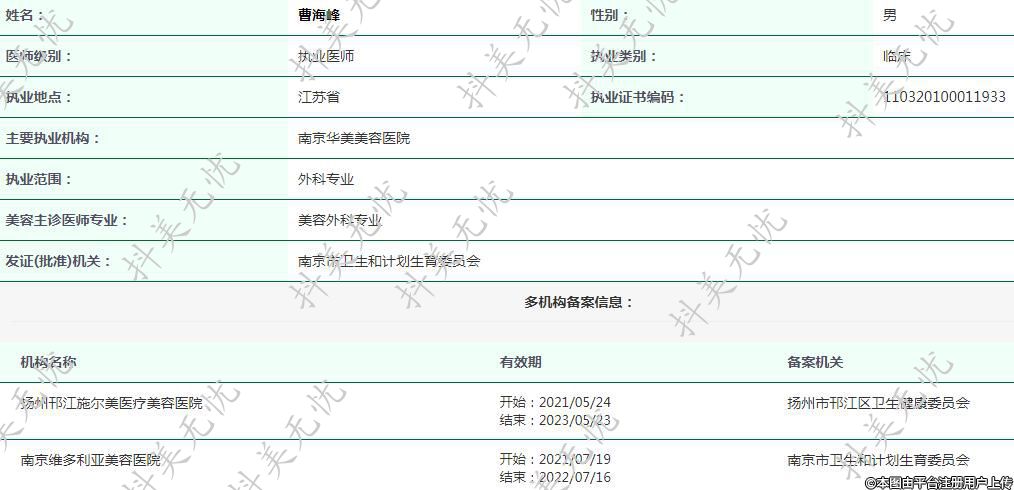 主要執(zhí)業(yè)機(jī)構(gòu):南京華美美容醫(yī)院
