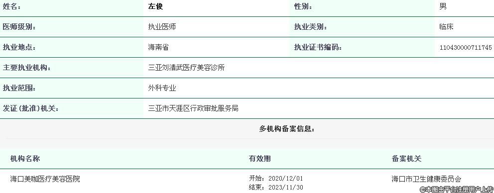 三亞劉清武醫(yī)療美容執(zhí)業(yè)醫(yī)師