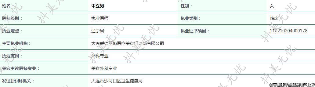 主要執(zhí)業(yè)機構(gòu):大連愛德麗格醫(yī)療美容門診部有限公司