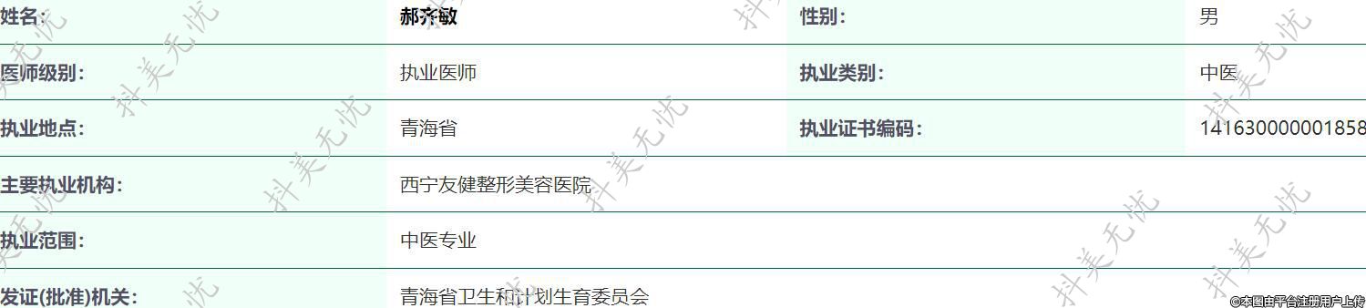 西寧友健醫(yī)療美容執(zhí)業(yè)醫(yī)師