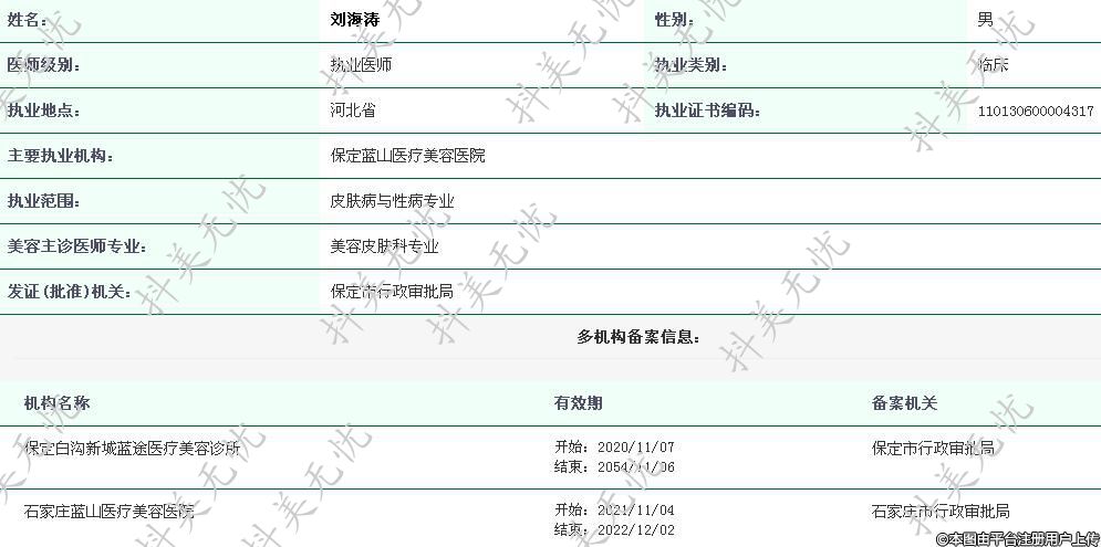 主要執(zhí)業(yè)機(jī)構(gòu):保定藍(lán)山醫(yī)療美容醫(yī)院