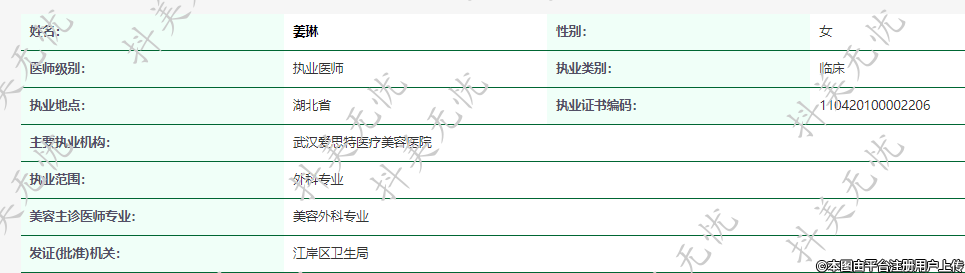 主要執(zhí)業(yè)機構:武漢愛思特醫(yī)療美容醫(yī)院