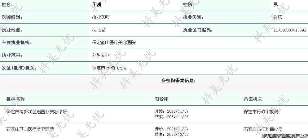 主要執(zhí)業(yè)機(jī)構(gòu):保定藍(lán)山醫(yī)療美容醫(yī)院