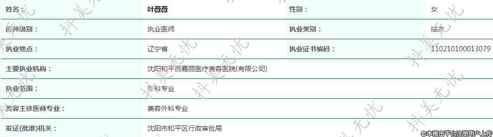 主要執(zhí)業(yè)機構(gòu):沈陽和平百嘉麗醫(yī)療美容醫(yī)院(有限公司)