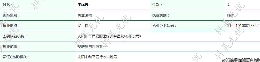 主要執(zhí)業(yè)機(jī)構(gòu):沈陽(yáng)和平百嘉麗醫(yī)療美容醫(yī)院(有限公司)