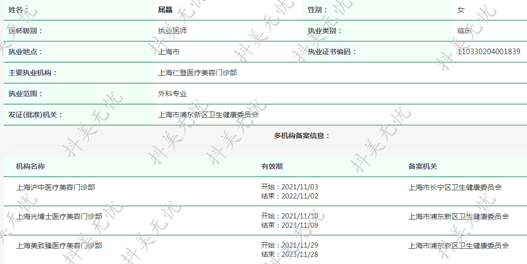 主要執(zhí)業(yè)機構(gòu):上海仁登醫(yī)療美容門診部