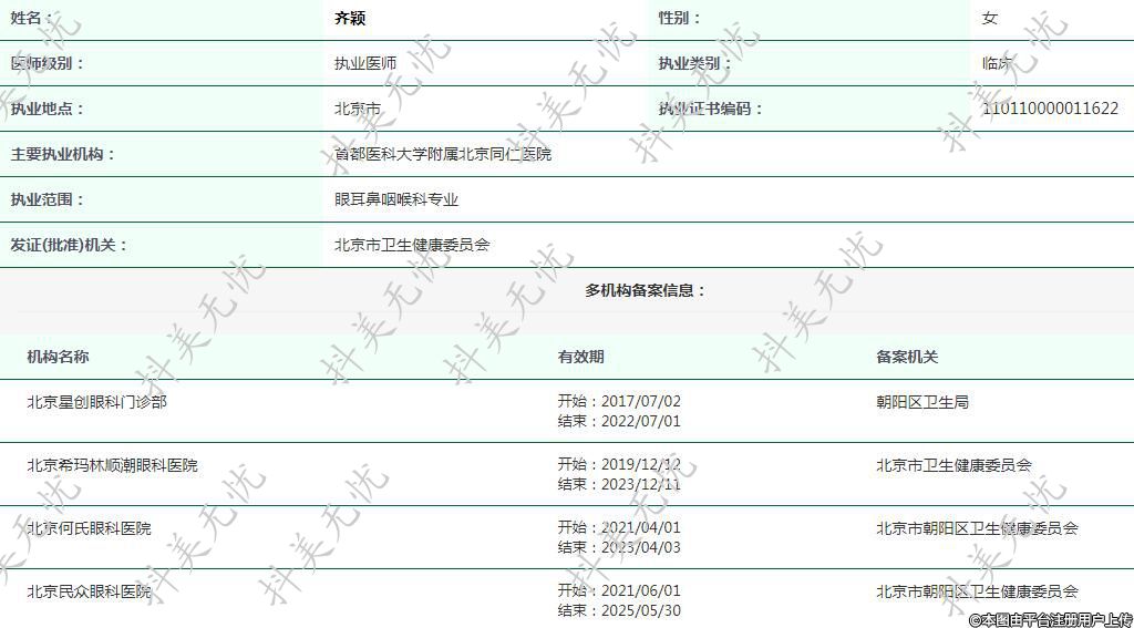 執(zhí)業(yè)范圍:眼耳鼻咽喉科專業(yè)
